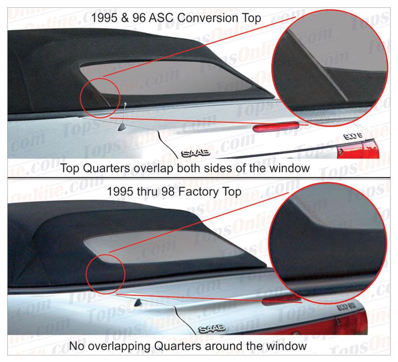 Fits 1995 and 1996 Saab 900, 900S, and 900SE Cabriolets that were produced via the ASC conversion (American Sunroof Corp.). Designed to fit both left‑hand and right‑hand drive versions—but will not fit non-ASC factory convertibles.
