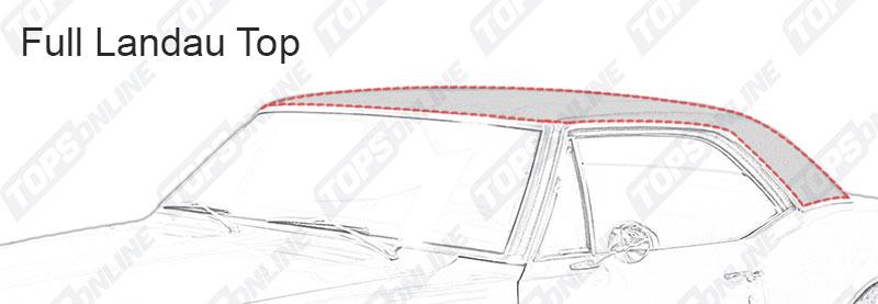 Please Read: These Tops are made with non-original style Narrow 46-1/2 inch deck seams because original wide materials no longer available. Landau Top Details: Made with two heat-sealed seams (one seam along each side), includes below rear window Valance Vinyl as original. Material Note: These vinyl tops are made with Haartz fuzzy backed vinyl Top material.