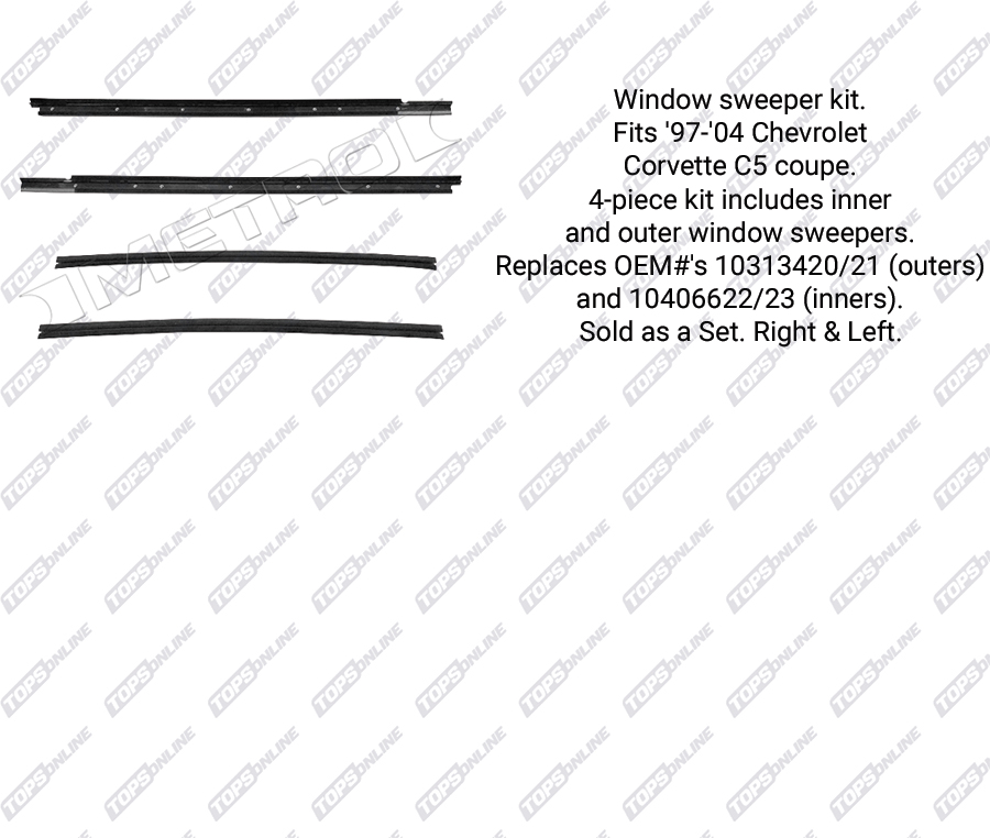 This replacement weatherstripping is designed specifically for 1997 through 2004 Chevrolet Corvette Targa Top Coupe models.