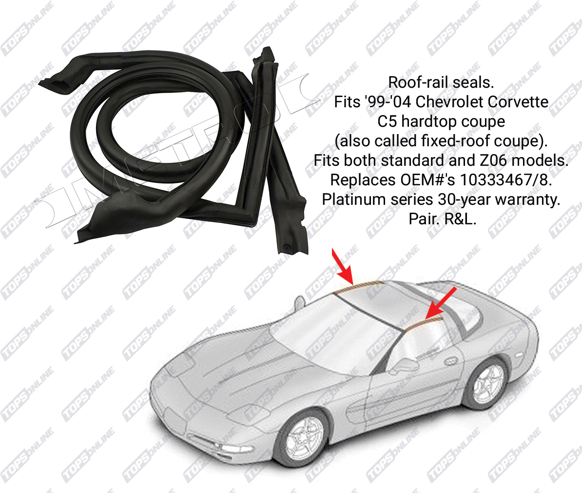 These weather seals are specifically engineered for 1999–2004 C5 hardtop coupe (fixed-roof) models.
