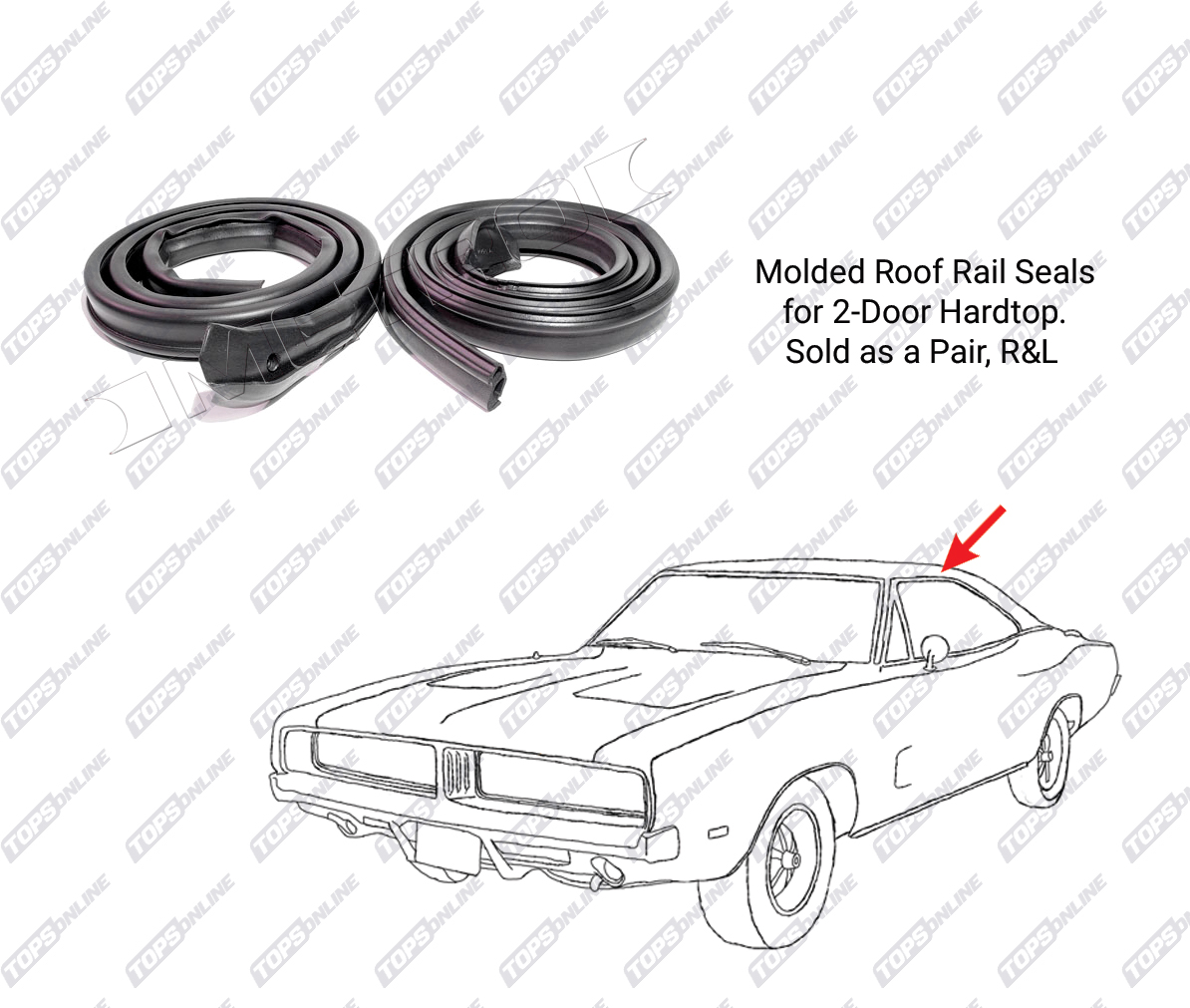 This replacement weatherstripping is designed specifically for 1971 through 1974 Dodge Challenger (E Body) 2-Door Hardtop models.