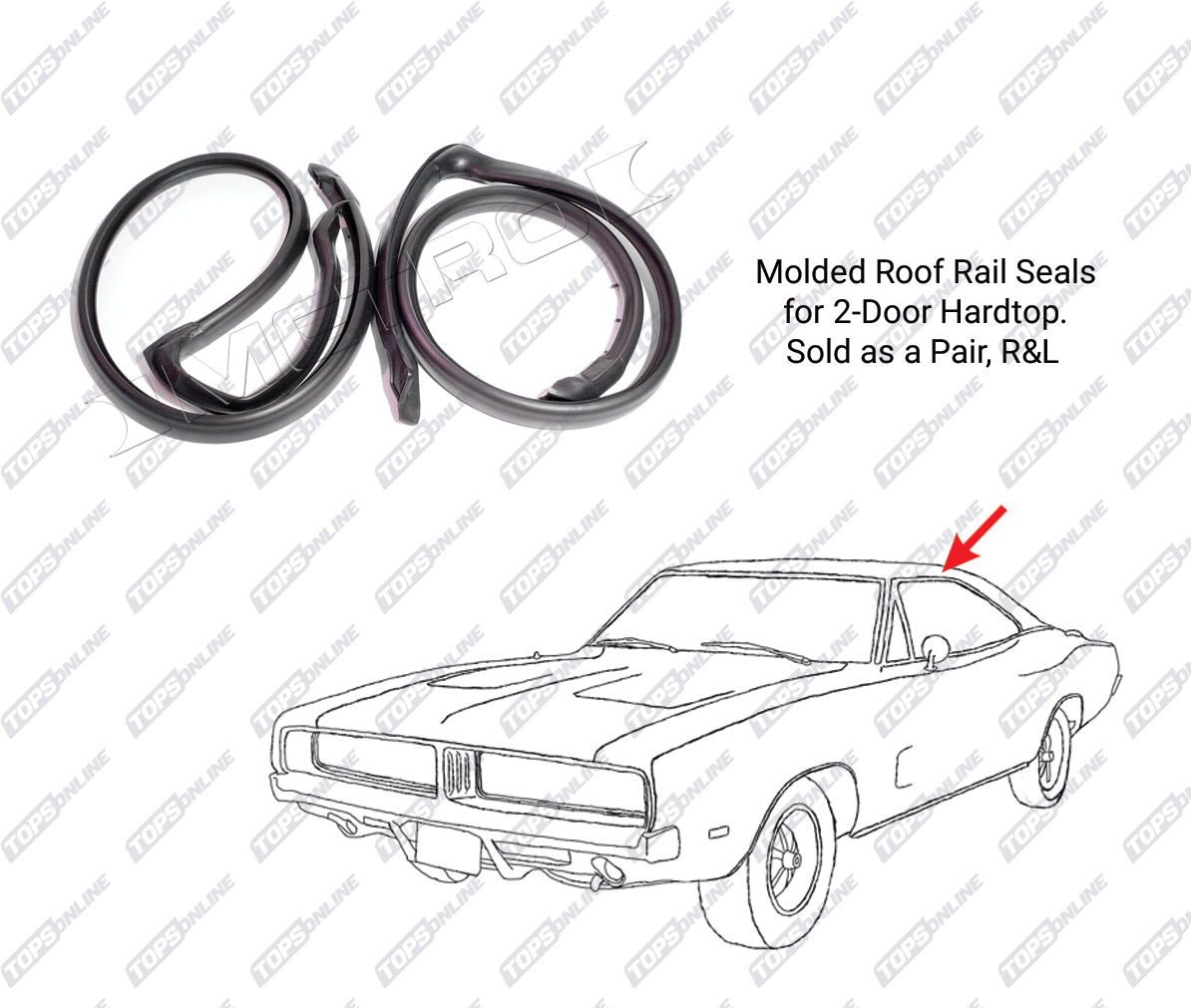 These molded weather seals are intended along the roof rail and door opening interfaces of the hardtop body to prevent water, wind, and debris intrusion. They are manufactured with micro-closed cell rubber and precision 3-D contouring for durable, long-lasting fitment.